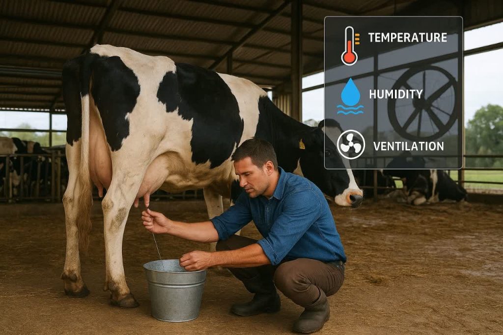 منطقه حرارتی خنثی برای گاو شیری – یعنی محدوده دمایی که حیوانات بدون صرف انرژی اضافی، عملکردهای طبیعی بدن خود را حفظ می‌کنند – بین ۰.۵- درجه سانتی‌گراد تا ۲۰ درجه سانتی‌گراد با رطوبت نسبی ۴۰ تا ۸۰ درصد است. هنگامی که شرایط محیطی از این محدوده فراتر می‌رود، گاو استرس گرمایی را تجربه می‌کند که باعث ایجاد یک سری پاسخ‌های بیولوژیکی می‌شود که بر تولید و تولیدمثل تأثیر منفی می‌گذارد. این بررسی، درک کنونی از چگونگی تأثیر عوامل محیطی – به‌ویژه دما، رطوبت و تهویه – بر تولید و باروری گاو شیری را ترکیب می‌کند و در عین حال راهبردهای مؤثر برای افزایش تاب‌آوری در برابر آب‌وهوا در سیستم‌های دامپروری را ارزیابی می‌نماید(۲, ۳).